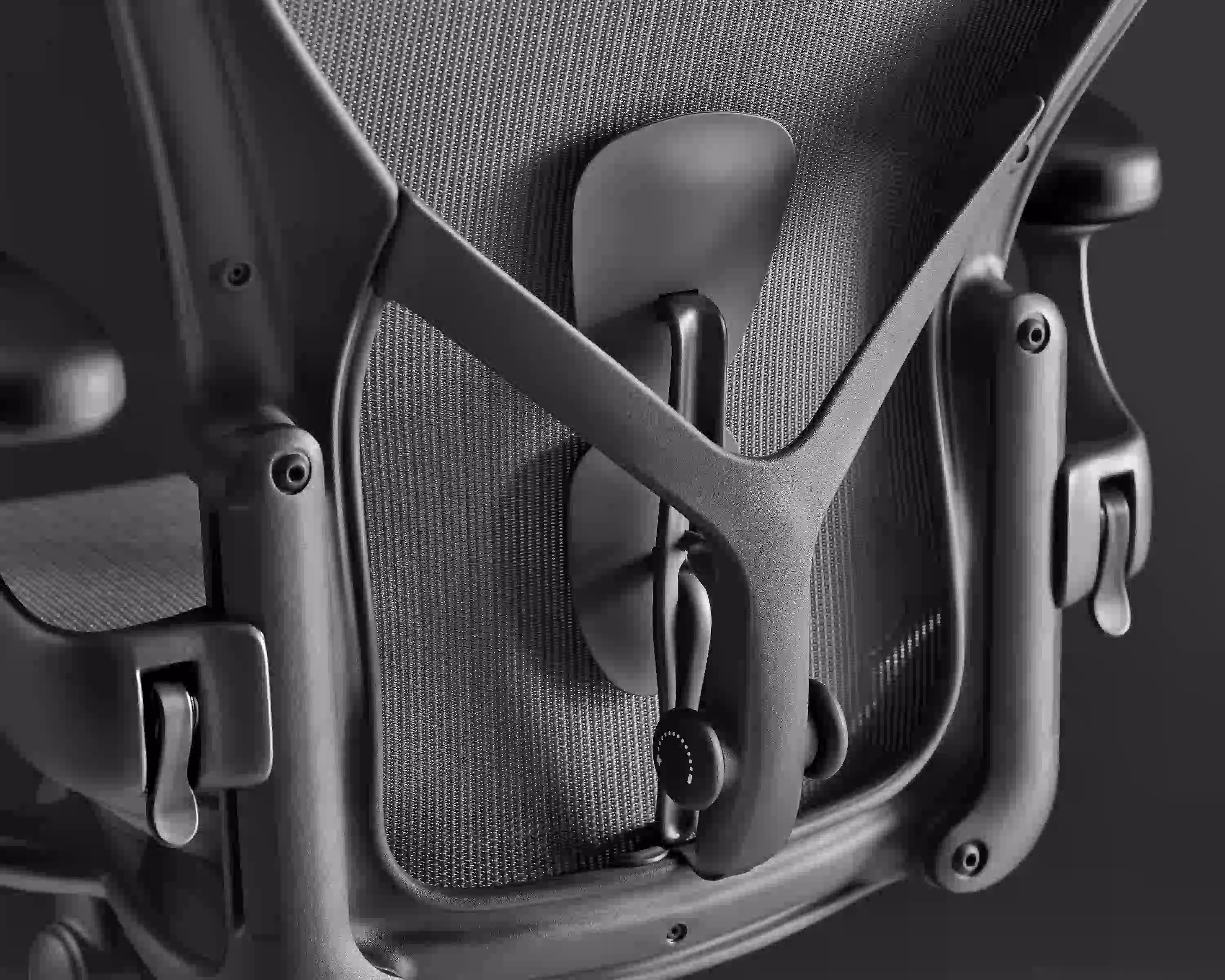 The most distinctive feature of the Aeron chair is superior durability. When the user stands up there are no traces of seat deformation. The well-known around the world pellicle is not suspended in a stand still position, but rather gets back to the initial form after the user stands up. The model has a wide back to support the spine and a seat pan with a mesh that supports the thighs in a comfortable position. 8Z pellicle is world famous material that holds the body in a suspended position distributing the weight evenly across the surface. The pellicle consists of 20% Elastan what allows better stretching of the suspension and responsible for the function to get back to initial position after the user changes the position. 8Z stands for 8 zones support with different type of stretching providing higher support where needed, either it a spine, thighs, back, shoulders, knees.Â
