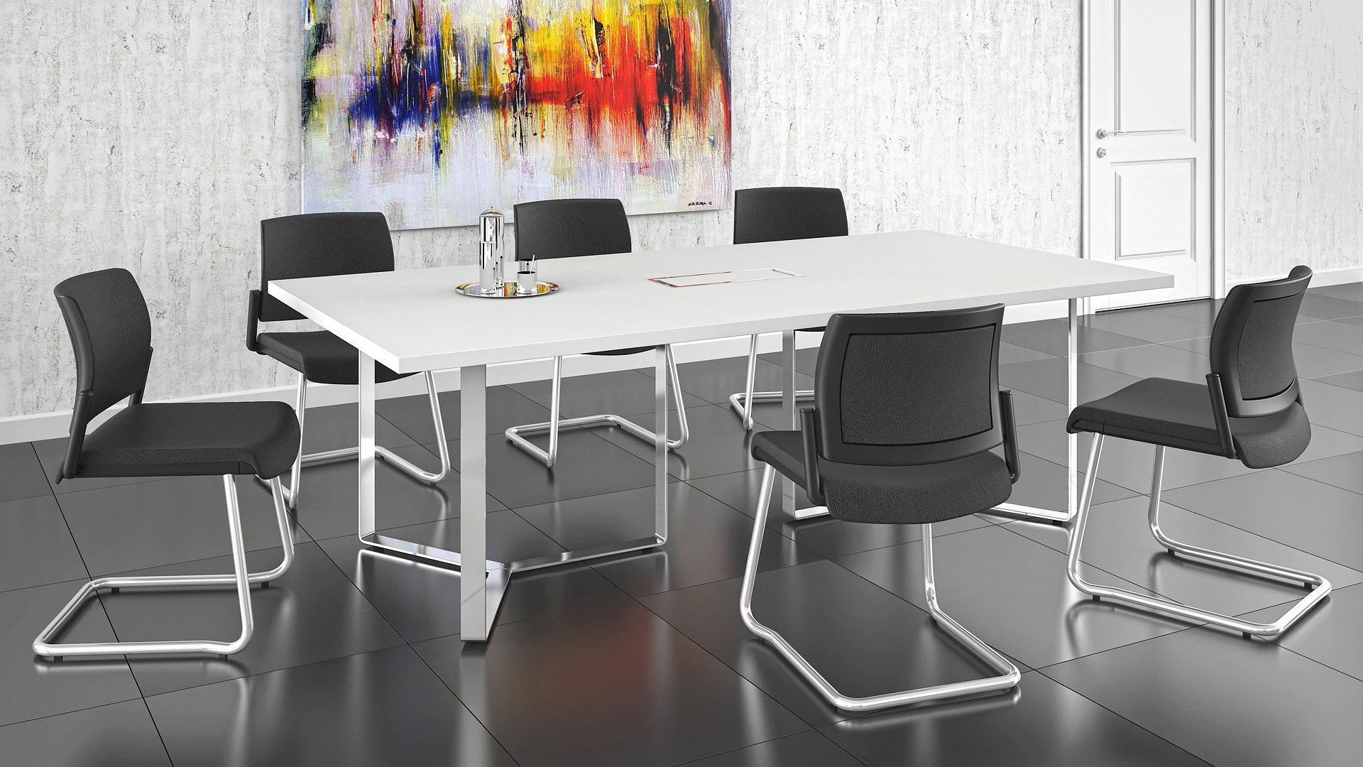 Meeting tables featuring modern and laconic design from the PLANA executive furniture collection are a perfect choice for higher-class conference rooms and meeting areas. Find a meeting table best suited to your office space: whether it is a square shaped table seating 8 or 14 people or a round table seating up to 3 people.