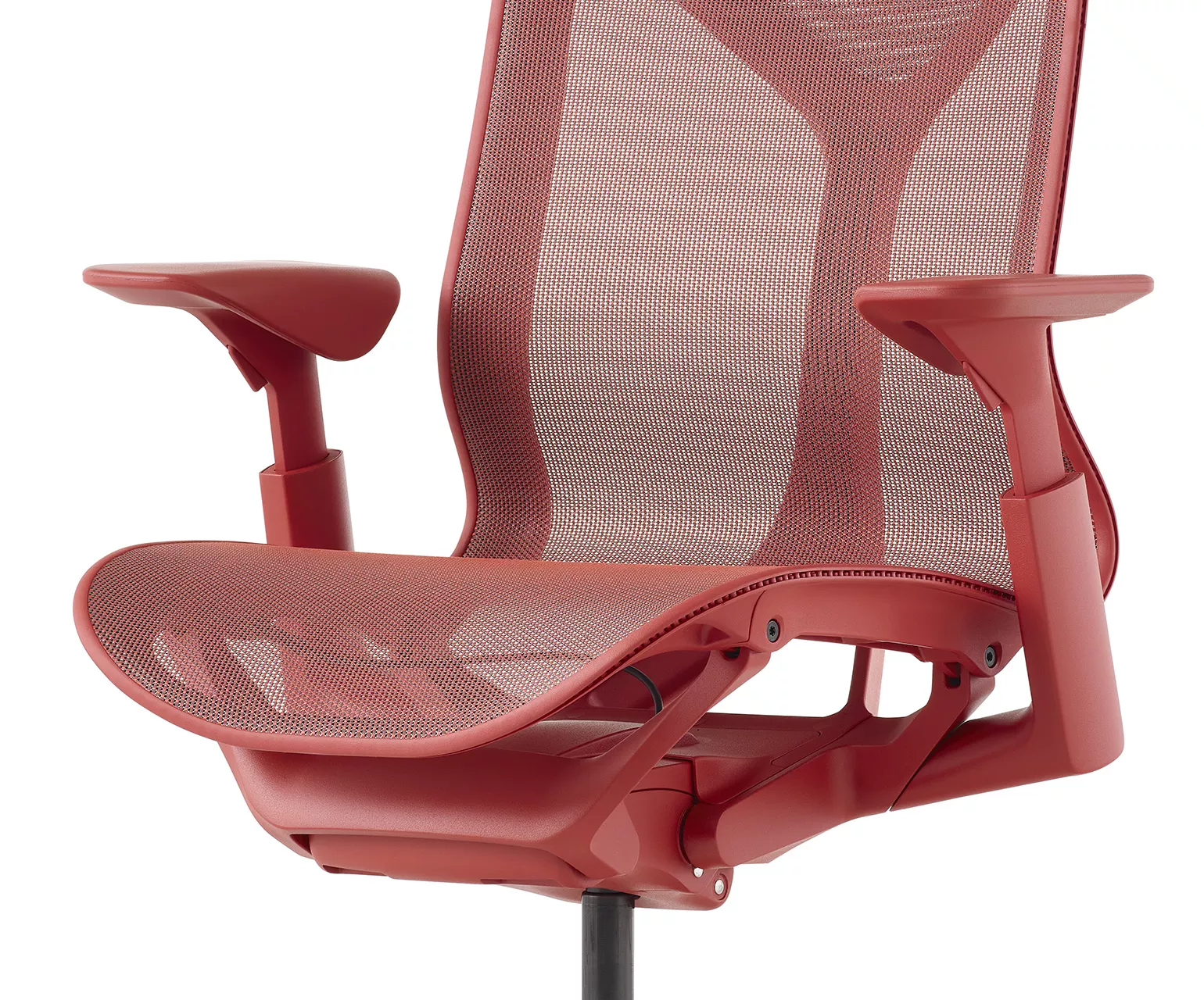 The Cosm Herman Miller Chair, with its impeccable design, allows the sitter to forget about any discomfort. Alongside its ergonomic construction, the chair boasts heightened sensitivity, responding instantaneously to changes in body posture. Regardless of who sat in the chair before, it retains its original form and remains undistorted. When working in the Cosm chair, you experience complete comfort at every moment. It offers three levels of backrest height adjustment. Inside the frame, a robust membrane is stretched, ensuring the chair's excellent breathability