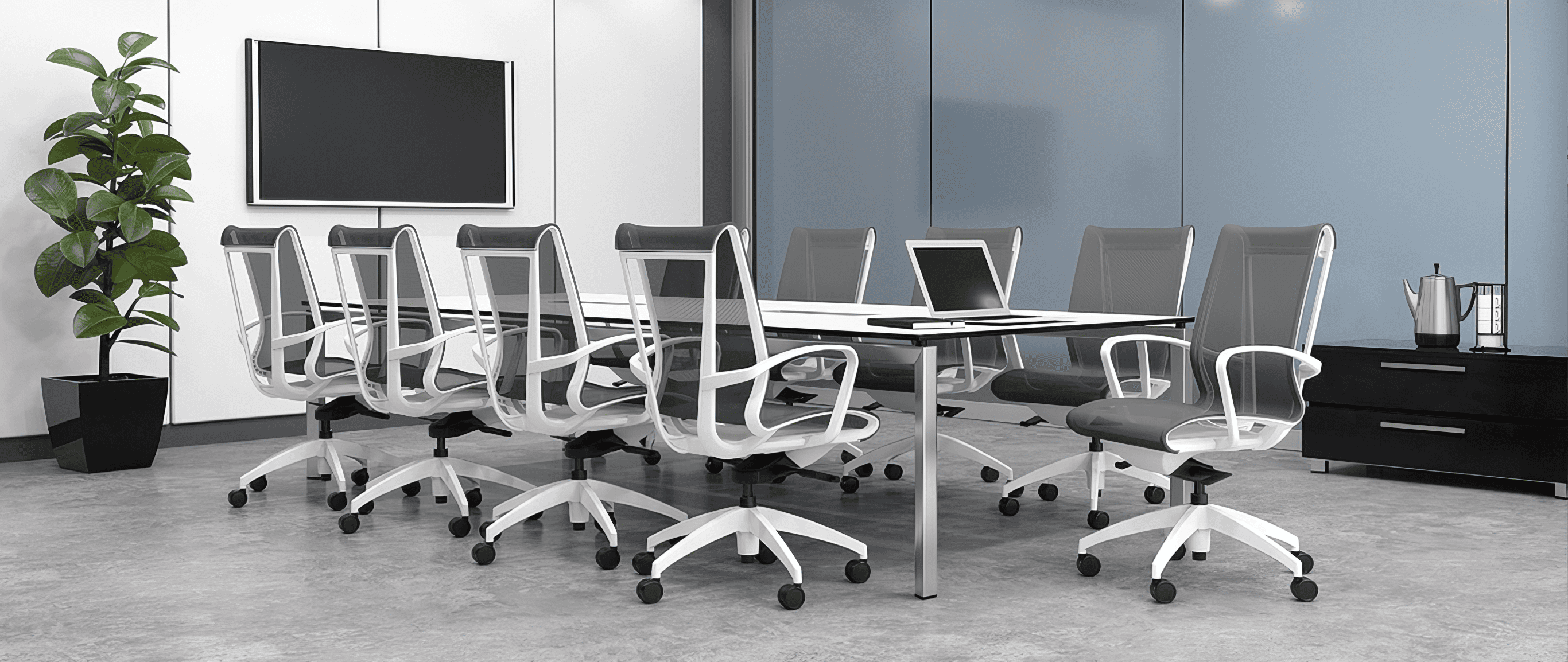 Choose between a full mesh or upholstered chair. The upholstered option features woven mesh underneath the fabric for a soft, comfortable, and supportive feel.