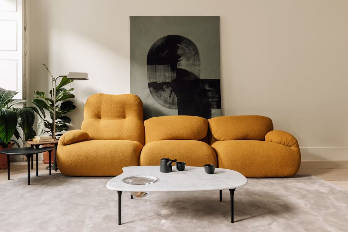 Designer Gabriel Tan designed Luva—Portuguese for “glove”—at his studio in Porto. He took inspiration from the shape of boxing gloves, with their soft grip and padded support, and Japanese futons—or Shikibuton—and their delicate rolled tops that provide as much function as visual interest. The result is a soft and billowy form, grounded with natural textiles and organic lines.