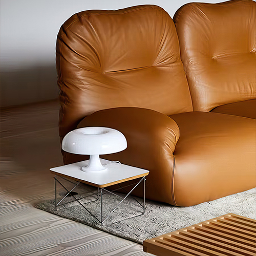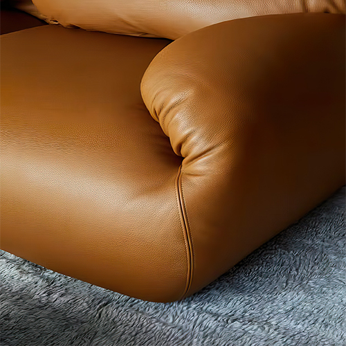 With its bold sculptural silhouette and inviting proportions, this sofa draws inspiration from the padded support of boxing gloves and the soft, rolled forms of traditional Japanese futons. The supple leather upholstery enhances its luxurious appearance, while precise tailoring adds definition to its voluminous curves. Designed for versatility and comfort, the backrest offers dual functionality: it expands to create a relaxed lounging position or folds down to provide a more upright, supportive seat. Perfect for modern interiors that value both style and ergonomic flexibility.
