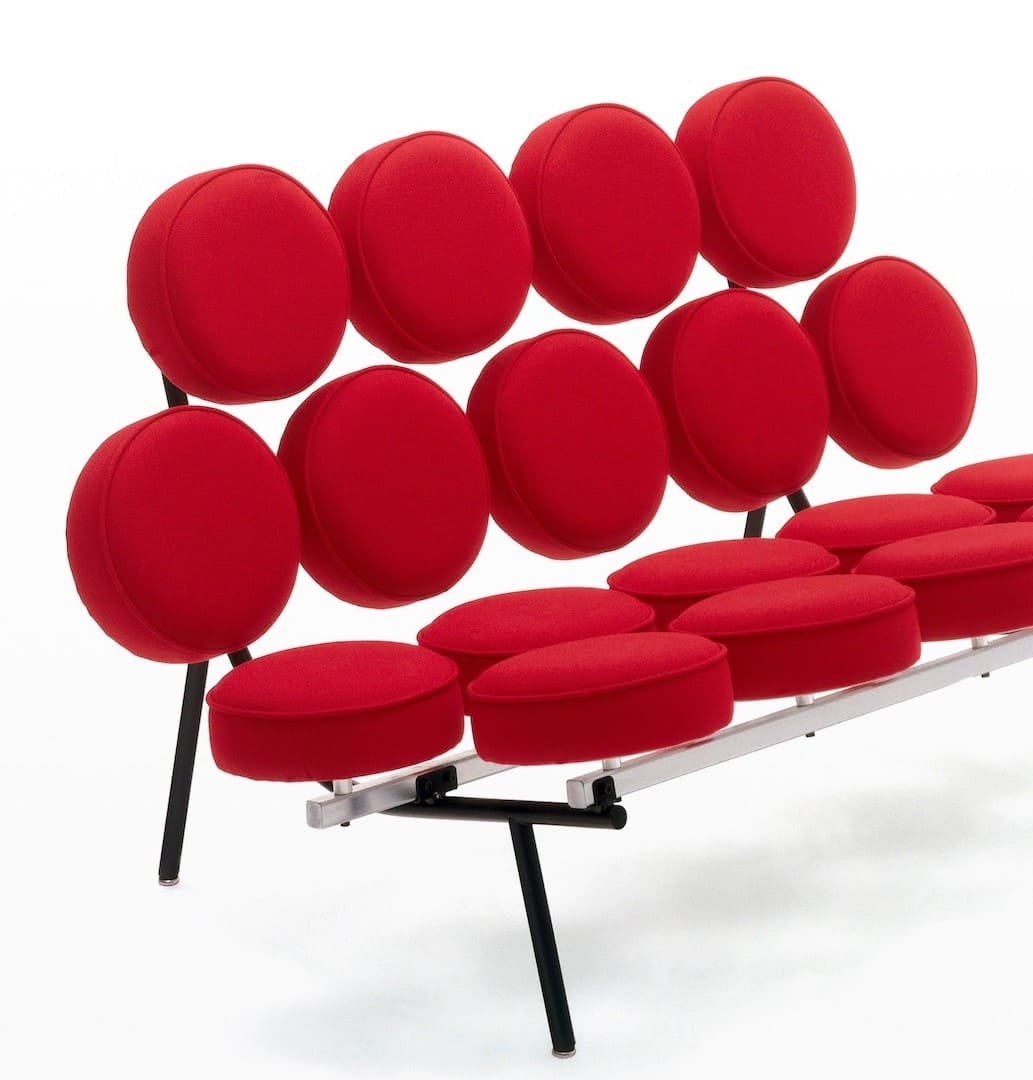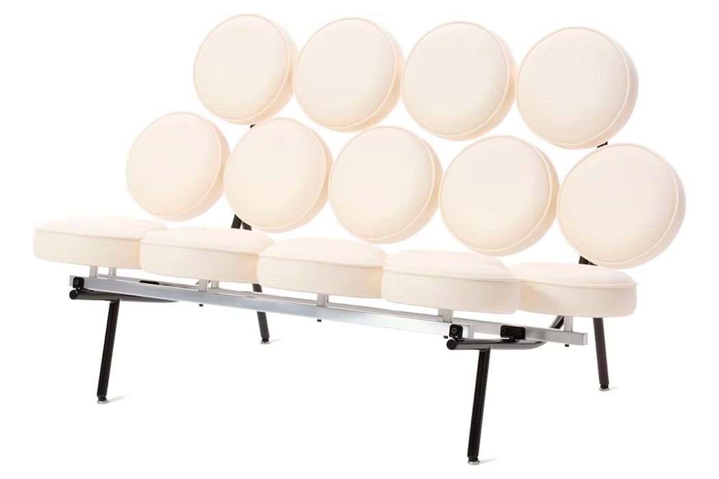 Choose from a broad palette of premium fabrics and rich leathers to tailor the Nelson Marshmallow Sofa to your personal style or environment. Opt for dramatic black leather to convey sophistication, or bring a burst of energy with playful orange or vibrant red fabric. Each of the 18 cushions is detachable, making cleaning easy and—just like the original Herman Miller catalog suggested—allowing them to be rotated to equalize wear over time. You can even swap out the cushions entirely to refresh the sofa’s look without replacing the whole piece. Supporting this iconic arrangement is a brushed tubular steel frame with satin black legs, designed to offer both strength and durability. Whether in a residential living room or a bustling commercial lobby, the Marshmallow Sofa is built to stand out—and to last.