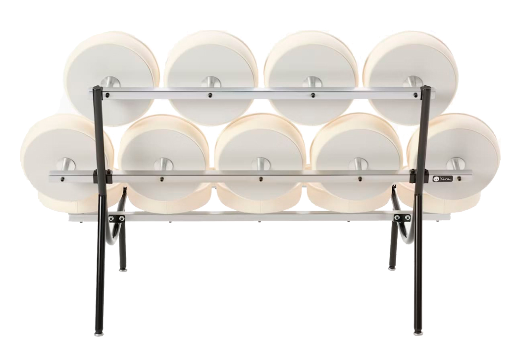 The Nelson Marshmallow Sofa is a bold fusion of artful whimsy and functional design. With its iconic arrangement of 18 circular cushions that appear to hover over a sleek, brushed tubular steel frame, it transforms any space into a conversation piece. Whether placed in a modern lounge, a creative office, or a sophisticated living room, this sofa brings both visual drama and everyday practicality. Its playful geometry is matched by surprisingly comfortable seating, making it not just a sculptural element, but a fully usable piece of furniture that adds character and charm wherever it goes.