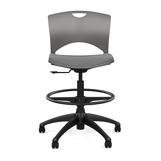 Stool Model: ONCALL LIGHT TASK STOOL by SitOnIt, backrest material - gray plastic, seat material - gray fabric, frame - black