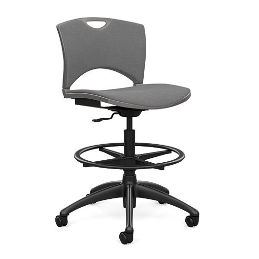 Stool Model: ONCALL LIGHT TASK STOOL by SitOnIt, backrest and seat material - gray fabric, black frame