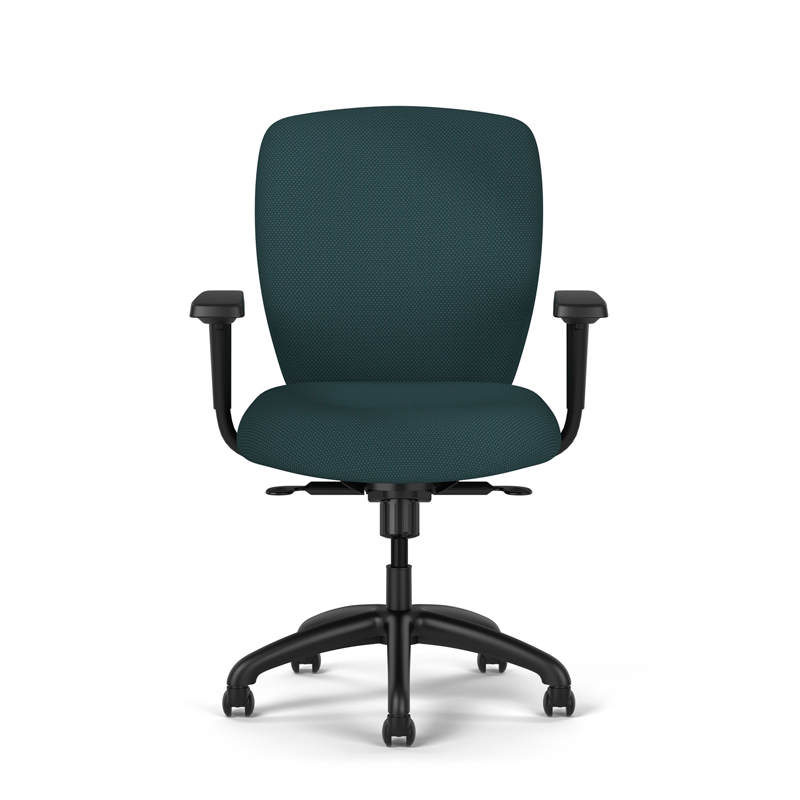Three arm styles are available, including loop arms and adjustable height/width arms. The chair is also offered with either a black nylon or brushed aluminum base.