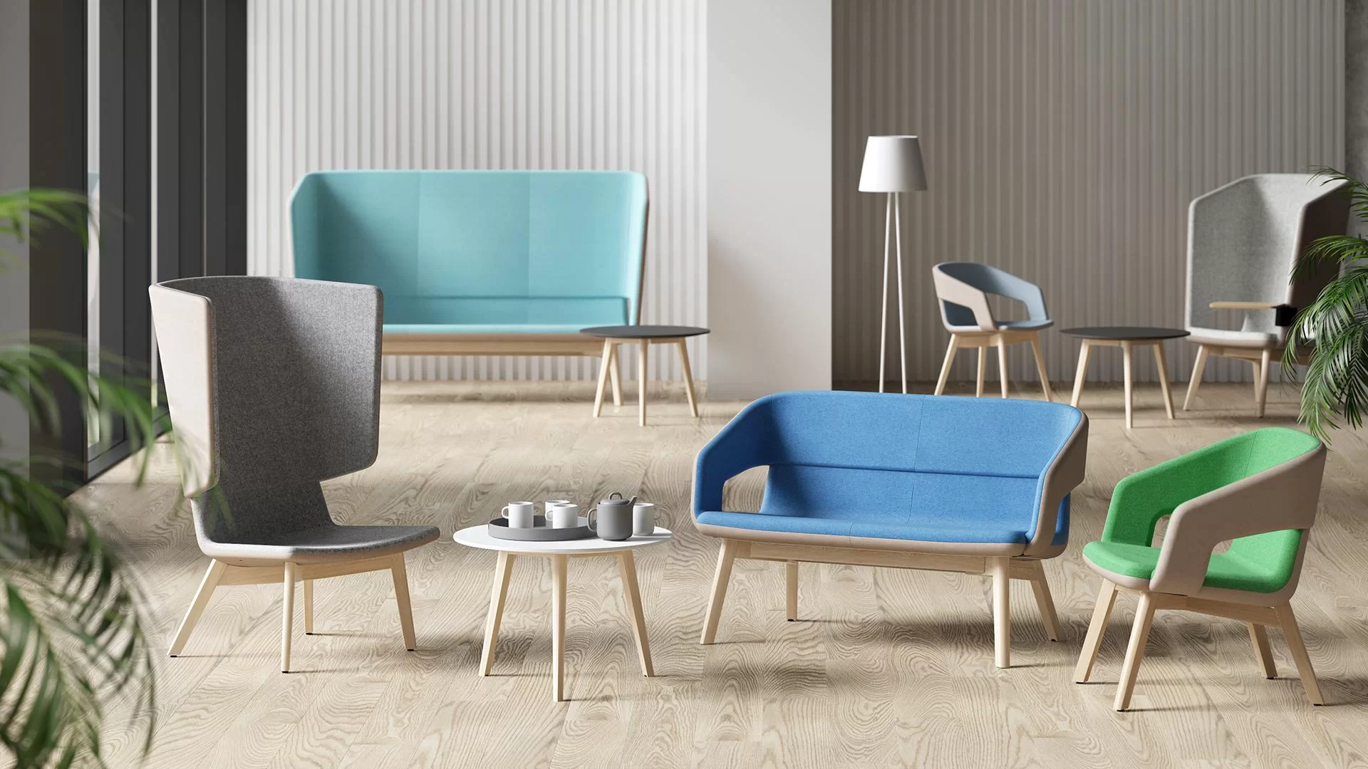 The backrests available in two different heights are designed to meet different needs that employees may have in the office. Low-back armchairs and sofas are ideal for office reception areas or open-plan relaxation spaces, lounge zones or cafés. This type of seaters foster collaboration between people. High-back seaters is a convenient solution for employees who need a private space for themselves where they can escape from the noisy office environment and relax or focus on individual tasks. These seaters can also be used as a space divider to visually separate office spaces.