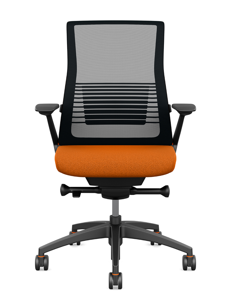 Enable exclusive lumbar tension and support using the quick-adjust slide knobs. Experience invigorating ergonomics from the advanced synchro mechanism and cantilever arms. Achieve your ideal seating position with the standard adjustable seat depth feature.