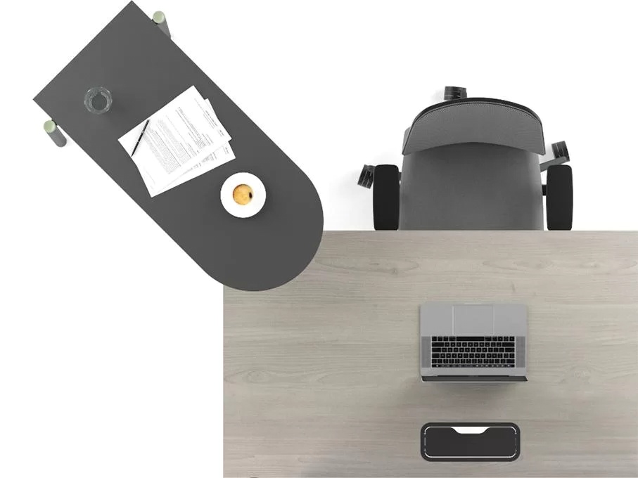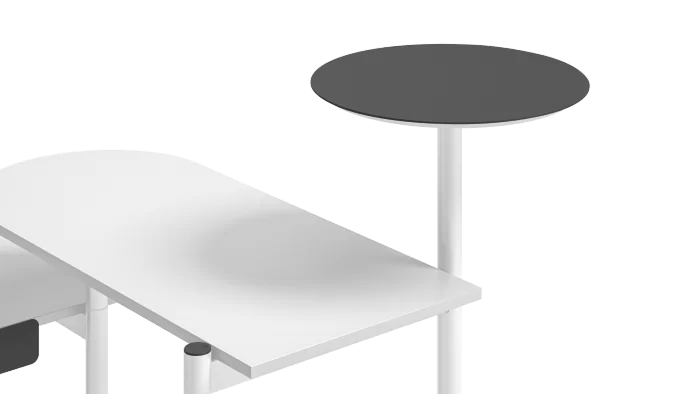 Extend your desk possibilities with a return table that can be used for both temporary work while standing and short meetings due to its larger height.