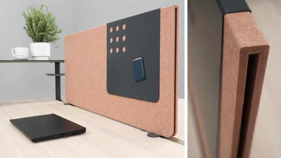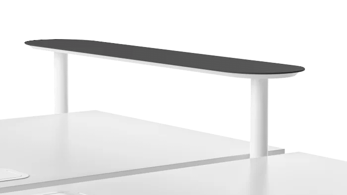 ZEDO stands out not only for its metal accessories, but also for the special PET felt screen. Non-typical felt sheet bending totally hides its supporting structure, while the extended edge covers the cable tray and wires. You can enliven the screen with playful and functional accessories – a magnetic board and a shelf for small items.