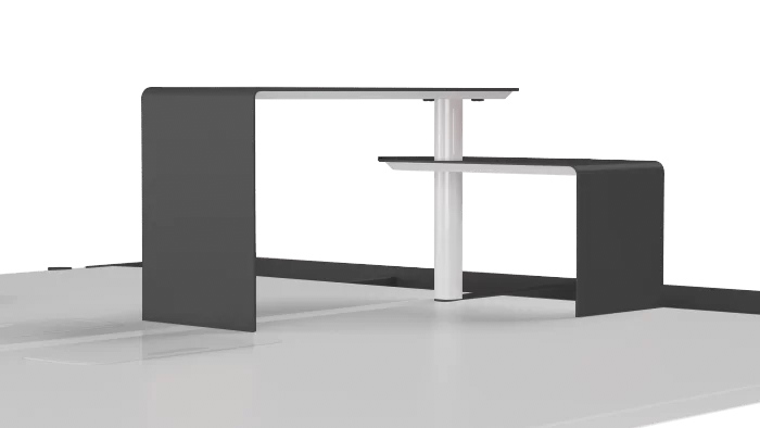 Thanks to digital technology, a modern workplace is becoming less cluttered and no longer requires many cabinets. Minimalist drawers and open niches with a PET felt lining are perfect for such a case. All the accessories of ZEDO desk collection – drawers, shelves and power units – maintain the continuity of metal colour combinations and functionality.